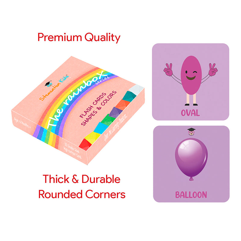 Enjoy teaching Shapes and Colours to the young ones with this bright & colorful set of flashcards. In addition, kids will also learn one relevant object related to the same shape and colour. Designed by team of early years Montessori and Education experts, these learning cards are proven to develop real association in recognizing shapes around them.