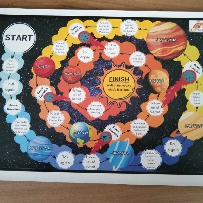 - In this, the child will learn about the planets and their major role with the help of board games. - - This box is full of amazing questions and a booklet having all the necessary information about the planets.