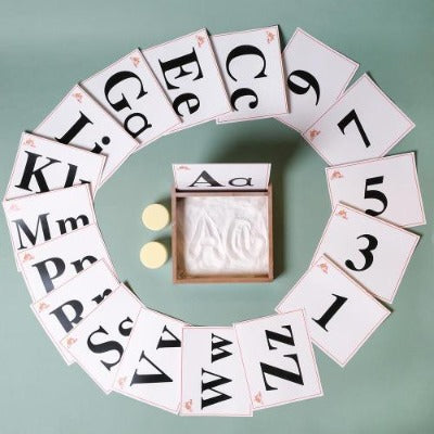 - A Montessori wooden sand tracing tray which comes with two small sand boxes.